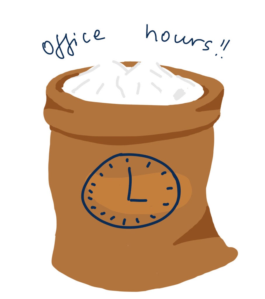 First and foremost, flour, or in my case, office hours. At GU-Q, professors hold office hours, designated a couple of hours per week, when you can walk into their office to ask questions or have a chat. I utilize them consistently because this is the very base of a Georgetown pancake. After all, that is how you grow your intellectual curiosity and connections on campus.