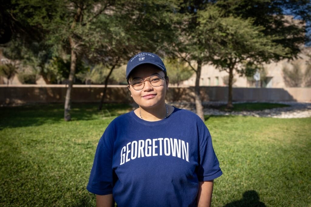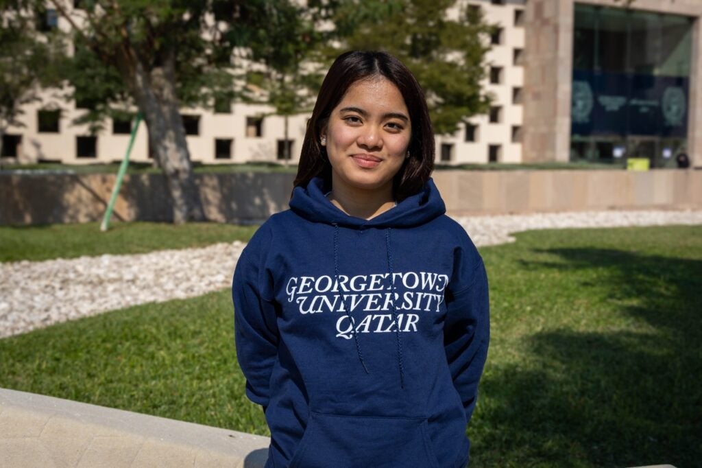 This year, I’m looking forward to bringing a Qatari lens to the Desert Hoya Storytellers Program. When I was applying to GU-Q, I was very curious about how the Qatari students fit into the larger Georgetown puzzle, and being able to share my own perspective feels both exciting and meaningful. In such a diverse institution, our stories not only reflect our identities, they also shape how we view, understand and relate to one another. I’m mostly excited to curate videos that reflect life as a Hoya, including the quiet moments in the desks of the library to the opportunities we’re given as GU-Q students beyond the classroom. Through writing, I have been able to find the path back to the voice within my mind and I’d love to share that inner dialogue with the Desert Hoya audience, creating a shared lens where narratives meet, overlap and reflect who we’re becoming as a collective.
