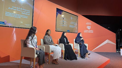 Other alumnae working behind the scenes at WISE to make it a success included Dana Al Anzy (GU-Q’17), Manager of Strategic Partnerships at Education Above All, Kholoud Al Shiba (GU-Q’18), Head of Advocacy and Community Development at WISE, and Dayana Amandossova (GU-Q’24), Partnerships Associate, WISE.