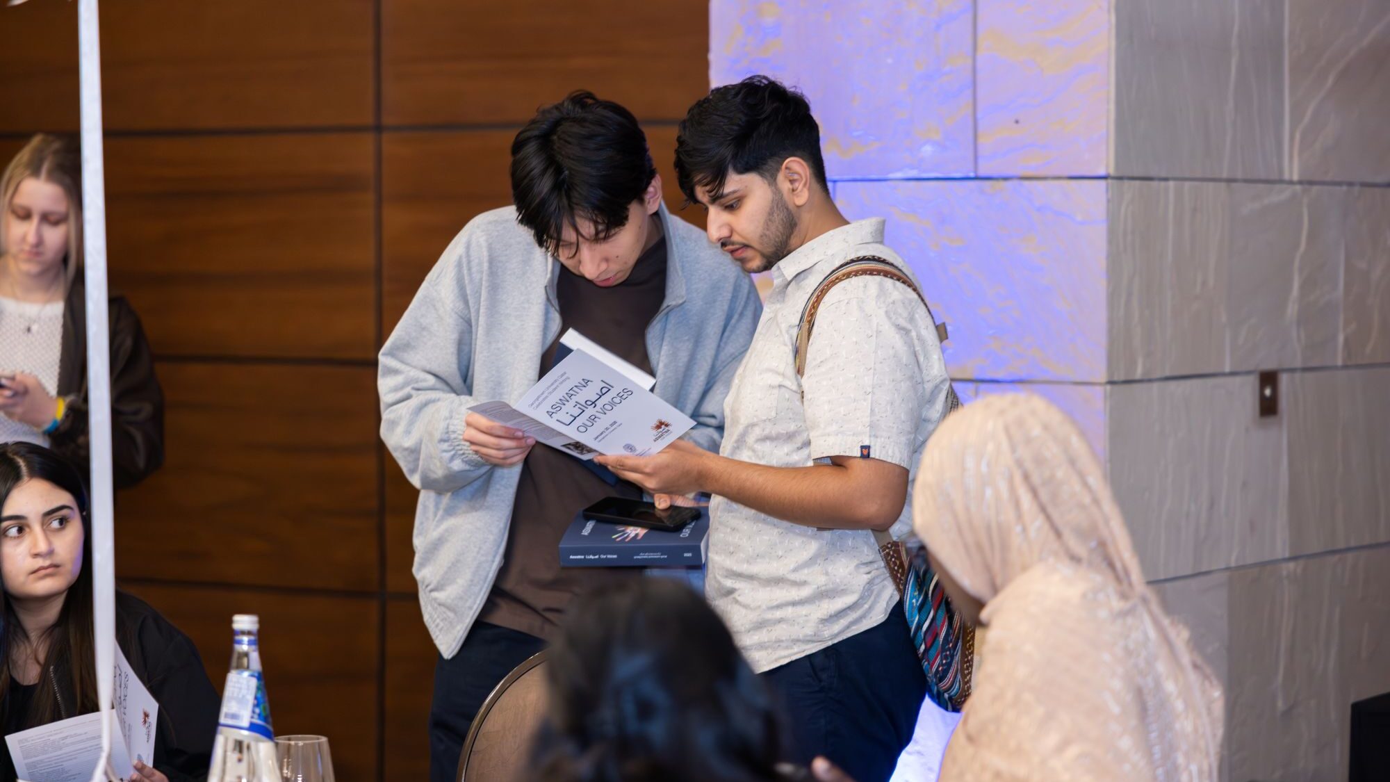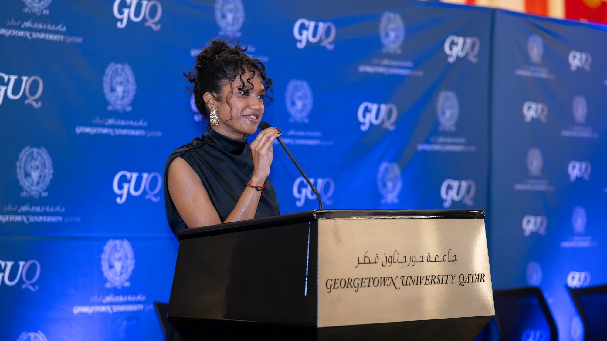 “GU-Q has a strong student writing culture,” shared Aswatna Editorial Assistant Jaelene Iyman (GU-Q’26). “Students are constantly thinking, questioning, and creating across different languages and experiences. Aswatna was a way to bring this writing culture into an anthology that creates a dedicated space where student voices are celebrated.” Student writing is enriched by reflections from faculty and staff on significant moments in their time at GU-Q.