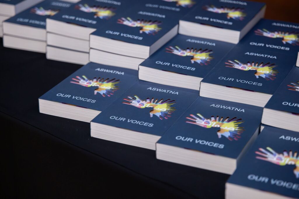 Copies of Aswatna: Our Voices are available in the bookstore.