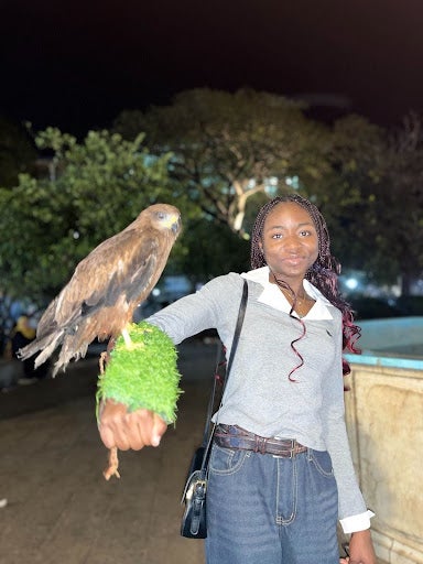 Whether singing a cappella alongside Maasai performers or carrying a falcon at Forodhani Gardens, I learned that being grateful and open to learning about new communities leads to participation. I practiced observing before speaking, listening before interpreting, and accepting discomfort—even when a wide-eyed falcon was comfortably perched on my elbow.